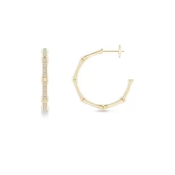 Flash Sale ❤️ Natori 14K Yellow Gold Indochine Pavé Diamond Small Bamboo Hoop Earrings 🥰