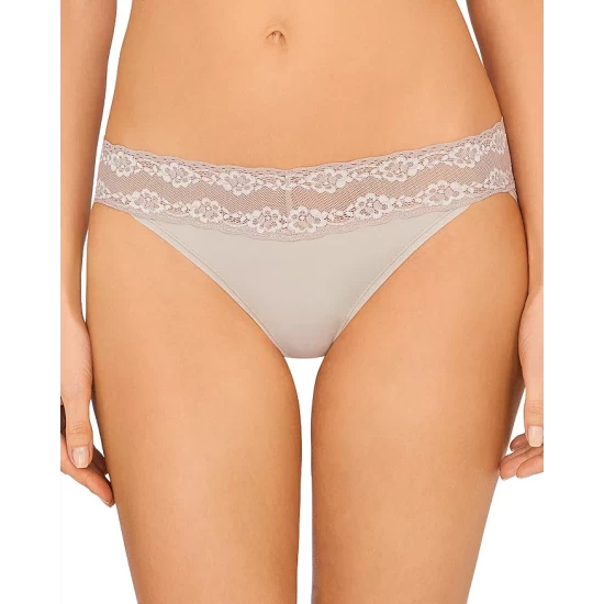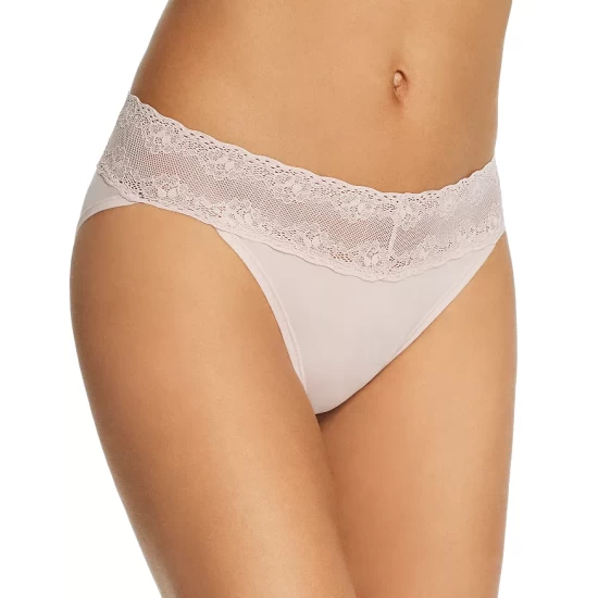 Natori gives the classically cheeky bikini a sweet twist with sheer lace trim.
