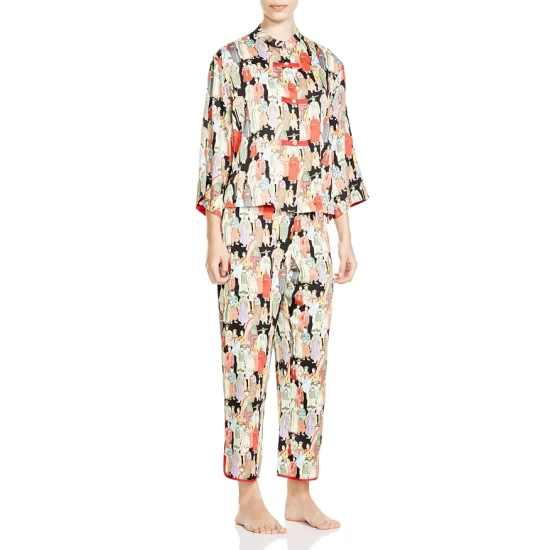 Take a trip across the globe in Natori’s Eastern-inspired print pajamas with a Mandarin collar and front button closure.