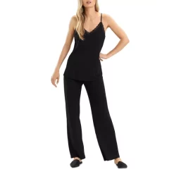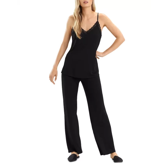 - Cami top: double V-neck with front lace trim, sleeveless, thin adjustable straps