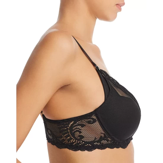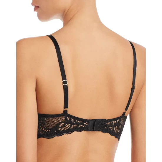- Lightly padded underwire cups with front clips for nursing, lace trim