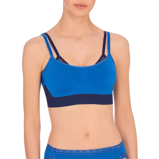 - Molded underwire cups with sheer mesh trim and front overlay panel for double-layer effect