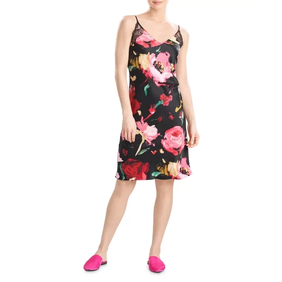 - Allover print, lace trim