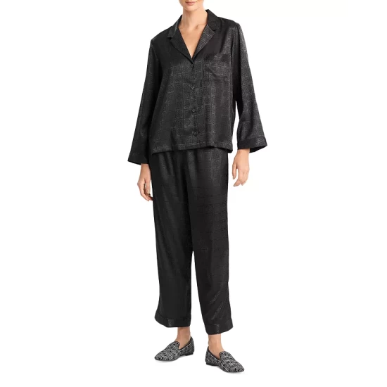 - Pants: pull-on style, drawstring waistband, tonal jacquard design
