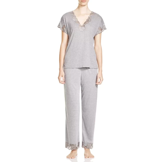 A heathered short-sleeve top and pants set with floral lace trim from Natori.